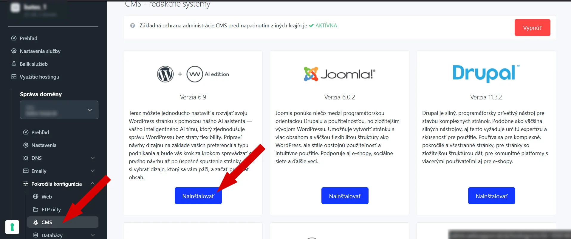 • Tip: Pre WordPress odporúčam nie najlacnejší hosting, nakoľko systém vyžaduje určitý výkon, ktorý ponúkajú lepšie hostingy. Ak si neviete vybrať, kontaktujte poskytovateľa, rád Vám poradí s výberom.